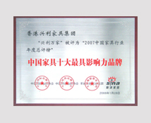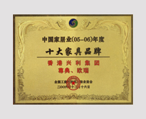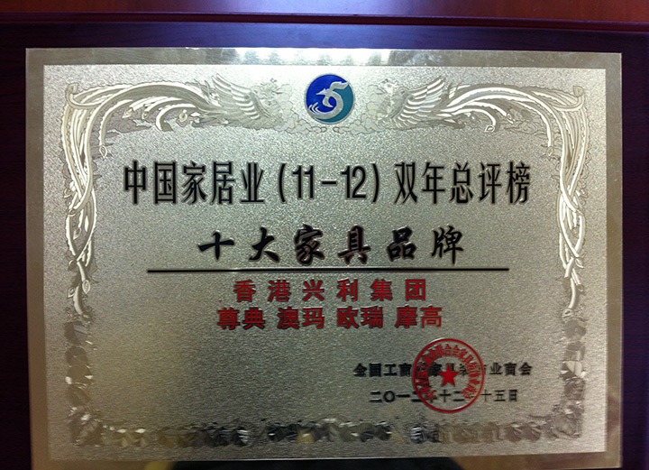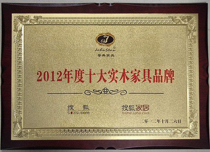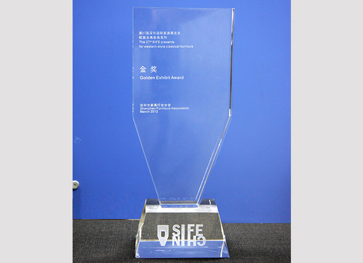 Year 2012 The 27th Shenzhen Furniture Fair - European and American Style Furniture Gold Medal/Year 2012 Top 10 Hard Wood Furniture Brand / China Furniture Industry (11-12) Double Years Top 10 Brands o
