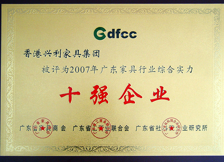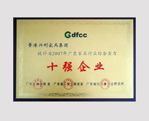 Year 2007 Guangdong Furniture Industry Top 10 Strength Enterprises
