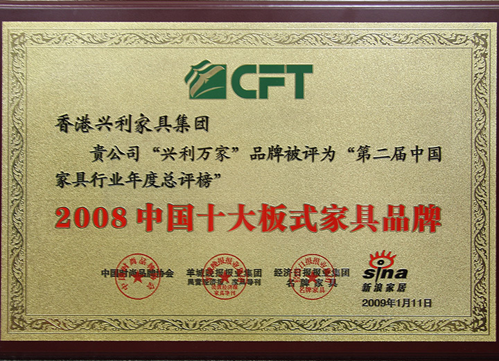 Year 2008 China Top 10 Furniture Brands