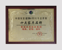 China Furniture Industry (09-10) Double Years Top 10 Brands of Furniture